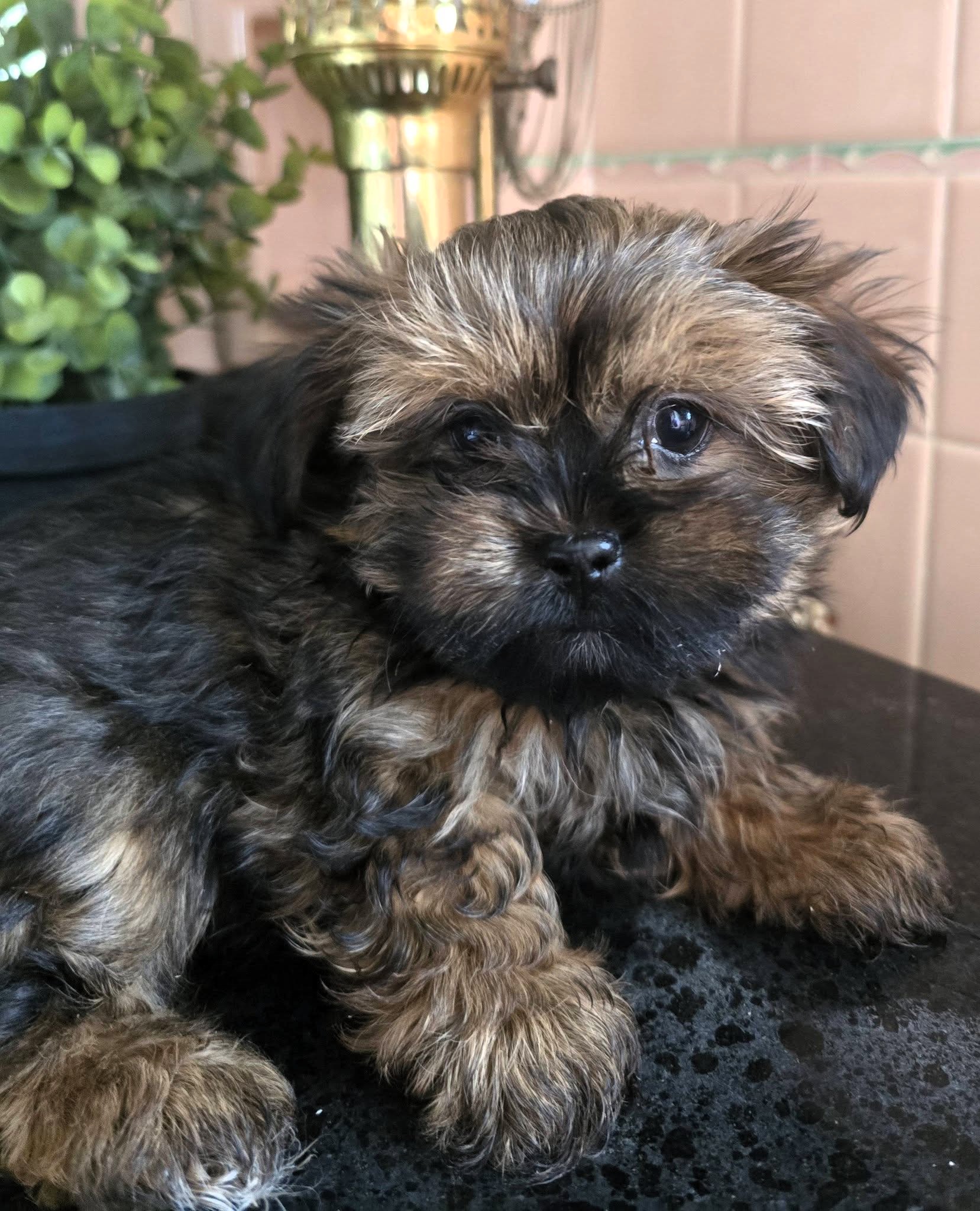 our little head turner will pull at your heart strings and fill you with kisses. They are an affectionate dog that loves nothing more than spending time with its family. Shorkies love human companionship and are sometimes described as a real live small Teddy Bear. No wonder in the last several years the Shorkie has become one of the most popular of all the designer breeds and are Fashionable and unique and is non shed. They are raised in our home with loving care so will be a perfect dog with people and children.